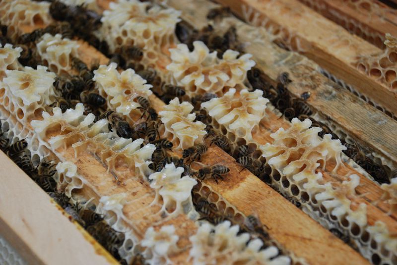 Die erste Schleuderung im Juni 2013 erbringt einen Gesamtertrag von 60 kg Honig.